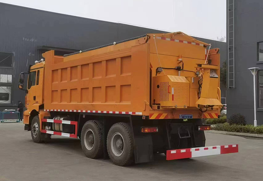 | 上裝配置 | 箱體采用優(yōu)質(zhì)碳鋼板,標(biāo)配10立方撒布機(jī)也可以選裝12立方,不銹鋼撒布機(jī)甩盤,撒布盤直徑550mm,撒布機(jī)采用 V 型料倉,結(jié)構(gòu)簡單可靠,使融雪劑自動落料,出料完全,無殘留,箭頭燈、篷布、過濾網(wǎng)、后爬梯。加裝3.5米雪鏟,可切換3.5米除雪滾刷(滾刷可選自帶動力或者液壓取力)。 | ||